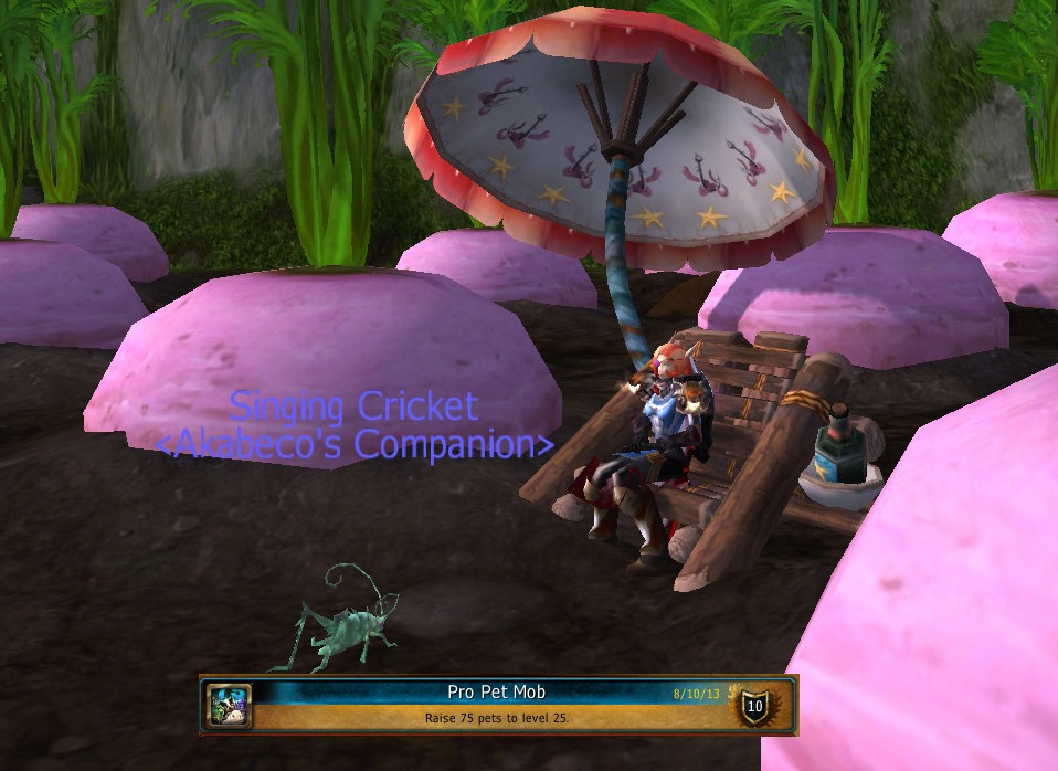 JUGEMテーマ:WoW WOW-monマスターに捧ぐAchieve、 Petを75匹、Lv25にするというAchieve[Pro Pet Mob]をいただきました。 ご褒美にバッタをちょうだいしましたが、強いのか・・・謎です。 GMに 「Lv25のPetすくねーなー。やる気あんの?」 と、言われたり言われなかったりで こらいかん。さぼらずやらねば っちゅーわけで、奮起してLv上げしまくりました。 ここ1〜2週間まとまった時間も取れないのが逆に丁度よかったみたいで PetBattleやりながら掃除だの準備だのしてたら いつのまにか終わってました。 達成感...