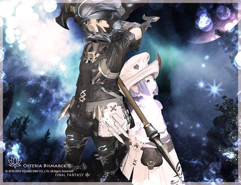 苦手なダンジョンやら、フロントラインやら 一日中ゲームし続け...ゲームなのにつかれたーってなることはよくありますが。 そんなときに、だらーっと話し相手になってくれるヒトが居るのはうれしいですね。 ウルヴズジェイルの船の端っこでしゃべってるときにパシャっとしたSSが なんとなく癒しだったので、さらに癒し効果をあげてみました。 元のSSは続きから。