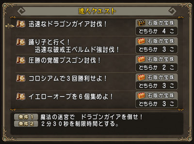 8/23配信の達人クエスト ■今週も一択… メインキャラは明日のアップデートに向けて達人クエスト報告保留中なので、今日は先週報告済みのサブキャラを使って先にクリアしてきました。 愛らしいプクリポ。この画面ギリギリ感がたまらない。 余談ですが、プクリポってサブキャラの種族統計取ったら一番多い気がします。 報酬4個の「迅速なドラゴンガイア討伐!」をクリアです。 「強」じゃないんです。「並」です。制限時間2分30秒。 構成は自分魔法使い、サポ魔法使い2賢者1の構成で行きました...