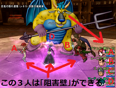 以前の記事では2回にわたって「壁」に関する記事を書かせて頂きました。今回はその「壁」をする上でも判断材料となり、ドラゴンクエストXにおいて基本となる3つの行動について書かせて頂きたいと思います。 ■いったい誰にターゲットが向いているのか ドラゴンクエストXにおける戦闘の基本として「ターゲットを見る」という行為があります。 敵モンスターが誰を今ターゲットとして狙っているのかを知る事により、「阻害壁」になるべきなのか「逃げる」べきなのかという判断がつきます。 最も簡単な判断方法は「敵の視線...