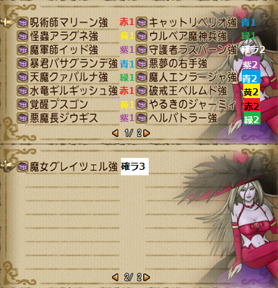 ■各種オーブを収集する強ボス日課 金策の一環として毎日強ボス討伐されている方は多いと思います。 強ボスと獲得できるオーブの色、個数は現在、以下の通りです。 「確ラ」と表示しているのはオーブが確定して、出る色はランダムである事を意味しています。ラズバーン強はそれが2個、グレイツェル強は3個ある事になります。 なお、強戦士の書で行けない強ボスとして「冥王○○強/冥獣王○○強」がありますが、こちらは確定ランダム3個となっています。 ...