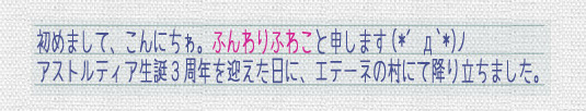 JUGEMテーマ:ドラゴンクエストX 改めまして。 プクリポなげこの冒険を今まで応援して下さってありがとうございました。 ブログを通して、沢山のフレさん達に出会えたことを 今でも誇りに思っています。 プクリポなげこの冒険は、ひとまず終了とさせていただきました。 白い勇者が現われるその日まで Seeyou♪(*´д`*)ノ そして、新しい私の冒険が始まりました。 のんびりやってます。 ふんわりふわこのアストルティア旅日記 生暖かく見守って頂けたら幸いです!! そして...