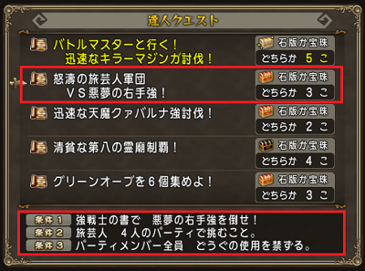 8/2配信の達人クエスト 報酬は3個ですが、同じ職でPTを組んでというお題が面白いのでサポのみでやって来ました。この「怒涛の○○軍団」シリーズは個人的に好きで、もう少し難易度上げてお題に出たら面白いのにな〜と思っています。 さて悪夢の右手強は毒が入りにくいのと左右の二体いるので範囲攻撃のできる棍をチョイス。サポは適当に選びました。適当に選びすぎてきょくげいスキルが100しかないサポが二人も混ざってしまいましたが気にしない。 【ニコニコ動画】【DQX】サポのみ 怒涛...