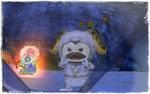 今わたくしがなによりもどれよりも一番に欲しいもの、それはアクセルギア。 性能がどうのじゃなくて、見た目用に!!ドレスアップ用に!! パカパカさせて楽しむ用に!! ということでカードを握り締めまして、ワッフルくんに2度目のキラーマジンガ戦へと 連れてきてもらいました。 みんなでリュートららら♪一番似合いそうな格好のこたたさんが棒立ちですが きっとこれは心で熱唱しているところなのだと思います。 さて開戦。 前回は無様な初戦であっさり敗北したけれども、宝珠の力もあってか 勝てた!! んでもってなんと...