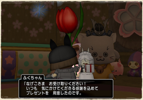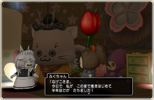 JUGEMテーマ:ドラゴンクエストX ログインしたら、ふくちゃんが言ったんだ。 ふくちゃんがうちに来て半年が経ったらしぃ・・。 と言うことは、 私も復帰から半年が経ったと言う事になるねっ!! 半年かぁ・・・。 ストーリー全然進んでないや(つω`*) あ、でもアレだよ。 災厄は倒したよっ!!!← ふくちゃん・・・。゚(゚´ω`゚)゚。アリガトウ! 私も復帰してからのDQ10ライフは、毎日充実してたよっ! 本当はずっとカジノで生活したいけど、 そんな事してたらまた黒くなっちゃいそ...