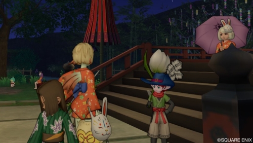 アストルティアで二年目の七夕シーズン! 去年トーゴが散々ひやかしたドワーフのカッポーが、今年もデートに 訪れていて、微笑ましいやら距離感変わってねぇじゃねぇのやら。 そんなわけでほとんど去年見た光景かなと思いきや、フと見ると プクリポくんが着ているのは浴衣じゃなくて甚平。 なるほど。今年の趣旨は把握した! おっすヒコリン、おいらヒコだよ。 ということでヒコボシさんのお手伝いを始めます。 このウサギのお面でね。 ---------------------------- ヒコさんは敵倒すとたまにドロップするあれを...