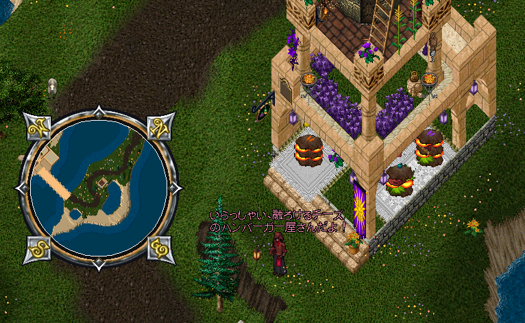 JUGEMテーマ:ウルティマ オンライン トリンシックに新しいレストランがオープンしました! 主に“ハンバーガー”という、アトランティック辺りで生まれた食べ物を扱っています。 場所はトリンシックガード圏内からすぐ、タマチャン島のど真ん中。 この記事では開店したばかりの店内の様子を確認できます。