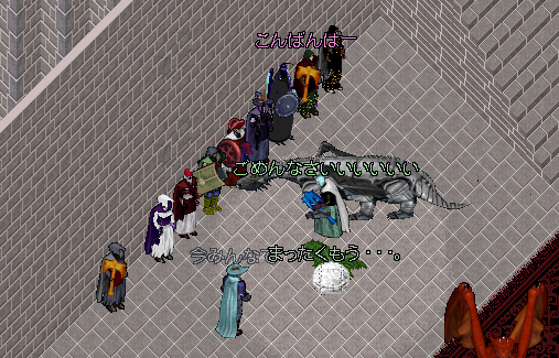 JUGEMテーマ:ウルティマ オンライン ご覧いただけますでしょうか、FFB隊員5名+NPC傭兵1名、 さらに保護者(……としか)の方々2名による大集団であります! ならばしかり、勢い良く戦いに赴くのです。