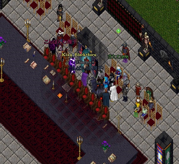 まず最初にブラックソーン閣下より イオドーン発見にともなう注意事項や懸念事項 などが伝えられました。 また、ガーゴイル族と更なる友好を深め、 その叡智に触れる為にガーゴイル語の習得を市民の皆様に薦められました。 次にユー首長EPSILON氏が 今期限りで首長を辞める事を明らかにされました。 次にブリテイン首長Calvet氏が魔女コーラとの決戦について 支援を惜しまない方針を打ち出されました。 ミノック首長Jitta氏は引き続き鉱夫共同体との契約の続行と コブトスにおける不穏な動きの報告が...