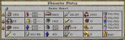 おまうます。まぁ、保存資料的な写真だけ。・その他スリサーMLエプロン復調のシャドウクローク夜目イヤリングプロテクション種族特性でHP回復2・スキル(補正込み)魔法 120(アクセ+20、武器-20)神秘・集中 120地図・鍵 100ハイド 100ステルス 90(アクセ+30)(Written by Mau)JUGEMテーマ:ウルティマ オンライン