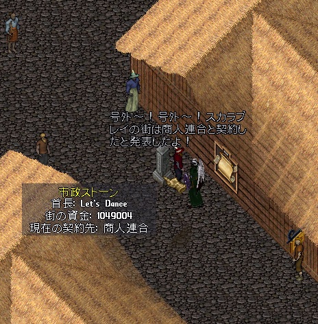 任期五週目に入りました! 投票の結果を受け、引き続き ☆商人連合ギルド☆ との契約を更新いたしました。 契約によって受けられる恩恵は ☆マナ回復 +2☆ と、なっております。 契約料として予算から2Mを使いました。 現在スカラブレイの予算は 3,049,004gp となっております。 市政ストーンの横に立つヘラルドは ☆お金・全てのアイテム☆ を受け取れるようになっております。 市民の皆様の熱いご支援、お待ちしております!(^^)/