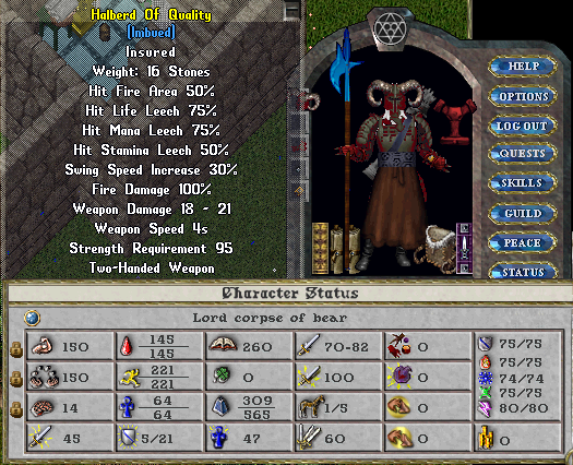 おまうます。 休止間際に作ってロクに触らなかった弓キャラを また使ってみてる。 でもすぐスタミナ減るのがストレスだったので、 全身鉄で作り直してみた。 スタミナ減らなすぎて楽しさ10倍になった。 前のやつ。 [UO] 速度-60も怖くない弓 http://pony-puff.jugem.jp/?eid=1216 速度90とか言ってるけど、速度低下食らう べドラム等以外では過剰もいいとこなので、 普段は武器やカメオいじって速度55で使う。 主な...