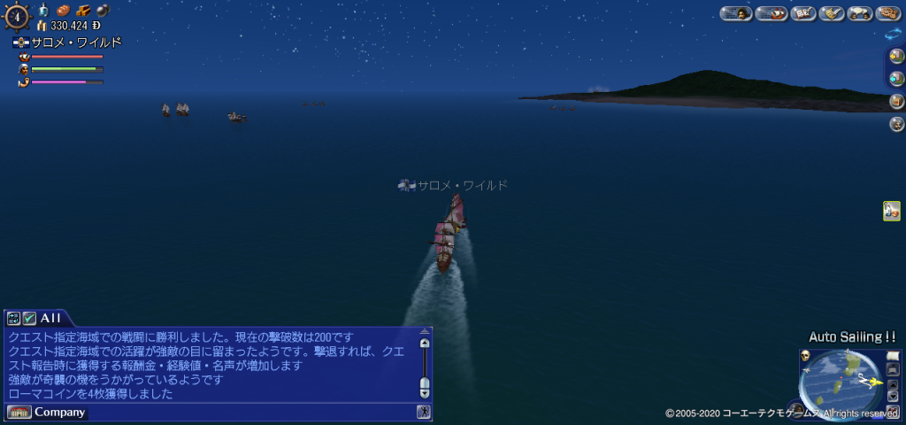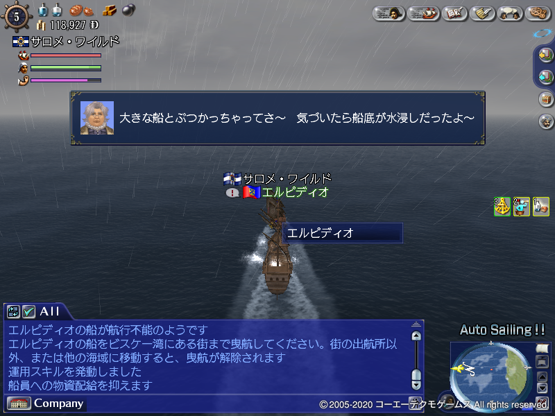 JUGEMテーマ:大航海時代Online なんとか、商会の皆さんのおかげで参加することができました。 何気に対人までやってた気がするけど、キニシナイ。瞬殺されて沈没してたし、アタリヤでもやるか的なレベルでした。 気にしていた小型の船倉が小さい問題は、やっぱり副官船の倉庫で足りてました。なるほどー。 3時間集中するのは難しいですね。 明日と明後日は大丈夫だろうか、と我ながら心配です。 とりあえず鉄材と鉄板を用意しながらクールダウンして寝ようと思ったら、ばったり「おにいちゃん」と出会いました。 ...