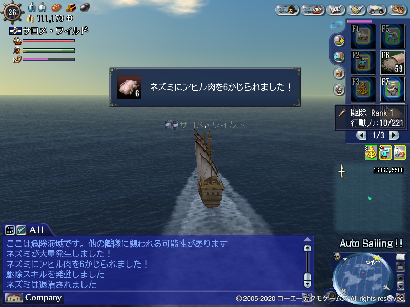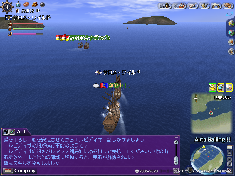 JUGEMテーマ:大航海時代Online セビリアから出発する世界周航シナリオですが、なんとかリオデジャネイロから太平洋を経て東南アジア、マニラに到着してシナリオをゴリゴリ進めておりましたら。 負けました。(7章、軍用スループ6隻) 思わずパニックしてしまいました。 冷静にアドバイスいただいたので、かろうじて3度目で私なんかでも勝てましたけど、シナリオ強制イベントはコリゴリ。 背後から襲ってくる敵に対して、いそいで後ろを振り向こうとするより、逃げて立て直したほうが良いとのこと、本当にありがたかった...