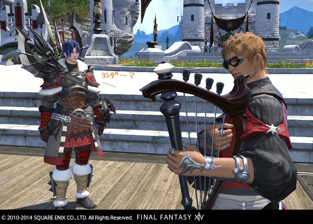 新生FF14が一周年だそうです。 というわけで、新生祭りが始まりました。 このイベント、ヨシダ?っぽい吟遊詩人が登場します。 いきなり謎の2014年の歌を歌いだすヨシダ。 「暁導きたるは 輝ける陽光なり 然れど 光き強は 深き闇も招かん」 「光き強」ってなんだ? 一部で「間違いでは?」と騒がれたらしいが、「間違いじゃないよ!」と公式発表があったようだ。 そして、これから物語はクルザスへ行くよ!とヨシダは言う。 ちなみに、吟遊詩人ヨシダはお尋ね者らしいw 「これまで活躍してくれた君に感謝を...