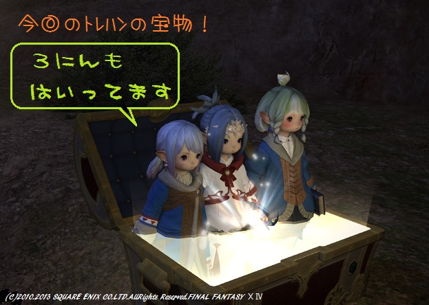 適当に地図がたまったら、トレハンツアーを主催したりします。 宝箱からは… こんなお宝が出てきたり… こんなお宝が出てきたりしますww トレハンはのんびりまったりやりたい。 JUGEMテーマ:ファイナルファンタジーXIV: 新生エオルゼア