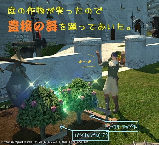 マイFC(フリーカンパニー)の庭の畑に作物が実りました。 なんかもったいなくて、まだ収穫していません。 それにしても …実ったのは本当にパイナップルなんだろうか?w パイナップルは木に生らないと思うんだが…… JUGEMテーマ:ファイナルファンタジーXIV: 新生エオルゼア
