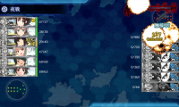 長いって聞いてたけど実際長かった。 [ゲージ1] 第三艦隊(遊撃部隊):鈴谷/朝潮/あられ/大淀/ジョンストン/日進/高雄 航空隊1:銀河*2/隼64/陸貞→L 航空隊2:銀河/野中/隼III+MAX/陸貞→L 航空隊3:紫電343/Fw190/SpitIX熟練/飛燕244→D 01:○S/- 02:○S/- 03:○S/三隈 04:×1戦目朝潮大破 05:×1戦目ジョンストン大破 06:○A/木曾 07:×1戦目ジョンストン、高雄大破 08:×C/- T字不利辛い 09:○S/大井 [ゲージ2]※輸送連合 第一艦隊:千歳甲/龍...