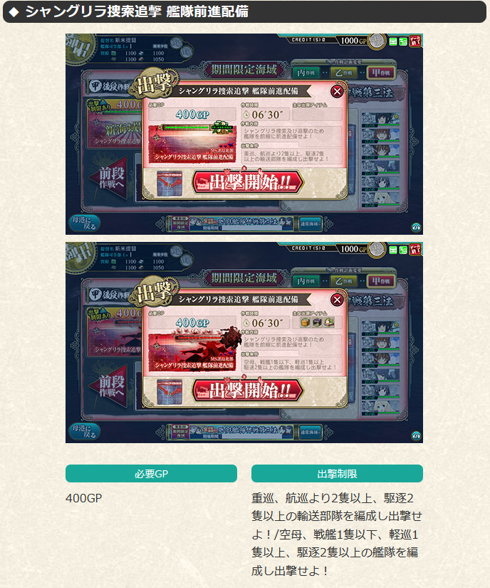JUGEMテーマ:艦隊これくしょん -艦これ- アサギリ「それでは後段作戦の会議に移りましょう。大淀さん。編成制限は?」 大淀「はい。こちらになります。」 梨璃「E-4ですね。上が輸送作戦、下が殲滅戦の編成制限ですね。」 アイク「ここまでくると、情報なしで攻略ってのもそう簡単にはいかなくなる。編成は慎重にな。」 高嶺「重巡か航空巡洋艦が2隻以上ね。よほどのことがなければ航空巡洋艦が望ましいわね。」 梨璃「どうしてですか?高嶺様。」 高嶺「輸送作戦は、TPと呼ばれるゲージを減...