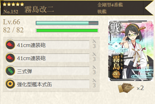 JUGEMテーマ:艦隊これくしょん -艦これ- 霧島編(進水日 1913年12月01日) アサギリ「…。」 霧島「霧島、ただいま到着しました。」 アサギリ「ああ、座って。」 霧島「まず、装備ですね。35・6?砲の準備はできましたか?」 アサギリ「それについては、榛名さんか金剛さんの第3開発だね。とりあえずもうちょっとで榛名さんが(練度が)80いったらダズル砲作るから。」 霧島「了解しました。」 アサギリ「金剛さんの時、35・6?砲改も作る方針で決めてるけど、最終的にはどっちがいい?」 ...