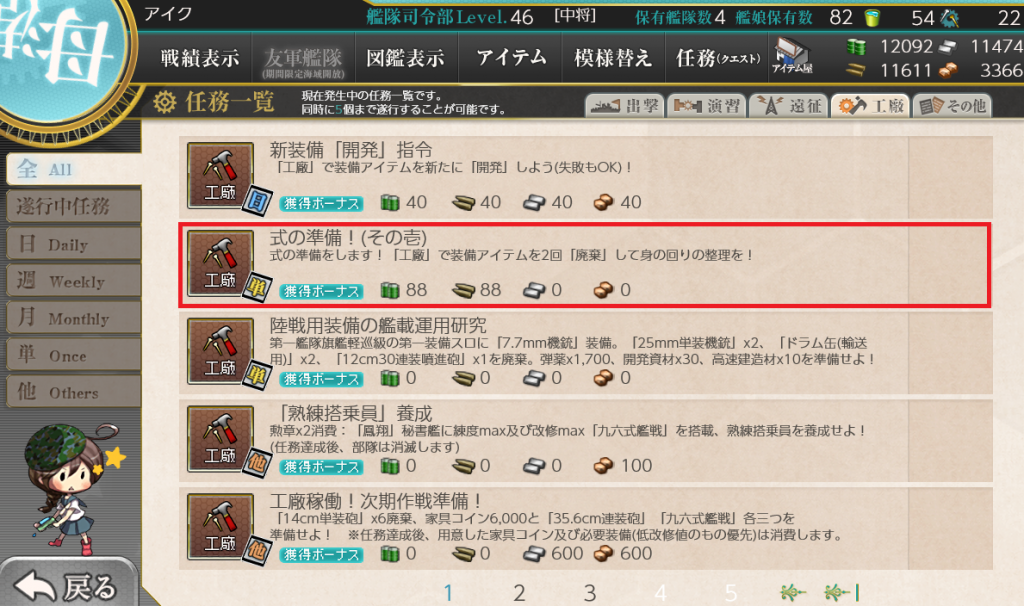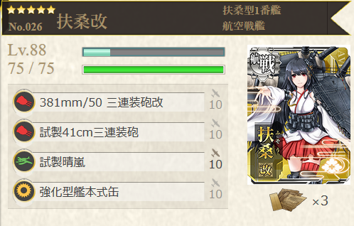 91式高射装置の+6からの改修に3連続失敗しました。 80%ぐらいだっけ? 確実化しない時は、やっぱり確率以上に失敗する印象がある。 さて、10月の5-5。 01:×A(レレ) 02:×A(レレ) 03:○S 04:×3戦目タシュケント大破 05:×2戦目鈴谷大破 06:○S(レレ) 07:×A(レレ) 昼戦で大破5とかひどくない? 08:○S(レレ) 09:○S 10:×A(レレ) 11:×A(レレ) 今更だけど、ボスの夜戦までタシュケントが健在のパターンって無いので...