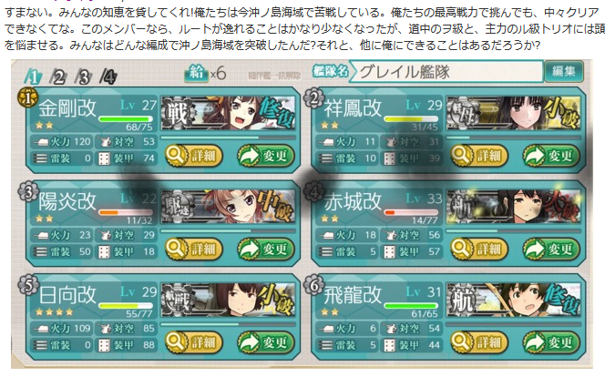 JUGEMテーマ:艦隊これくしょん -艦これ- 沖ノ島海域に苦戦しているグレイル艦隊。 このままではまずいと感じたアイクは、 大本営が設置している公式コミュニティに目を付ける。 しかし、コミュニティの場でアイクは、彼ならではの問題に直面することになる。 アイク「これが公式コミュニティか。」 大淀「ここで、先輩提督の皆さんから意見を聞くことができますよ。」 アイク「そうか。なら早速試してみよう。」 アイク「よし。これでどうだ?」 山城「金剛さん。ついこの前仲間にな...