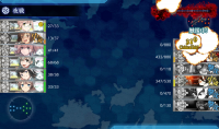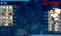 [戦力ゲージ:通常艦隊] 潮99:魚雷*3 択捉96:対潜 サミュ121:対潜 瑞穂94:瑞雲/晴嵐/甲標的 多摩131:連撃(夜偵) 足柄69(サブ):連撃(照明弾) 潮の手が空いたので曙から変更。 海防艦を2にして、足柄をサブ阿武隈にすれば上ルートを通れる? ・重巡級1隻以上でO ・軽巡2隻以上でO ・海防艦3隻以上でN ・駆逐1隻以上 かつ 海防2隻以上でN 上が優先なので無理ですね、やるならサブ雷巡か。 あと強友軍呼んだままです。 時雨が魚雷カットインで100〜200ぐらい削ってくれる。 時も...
