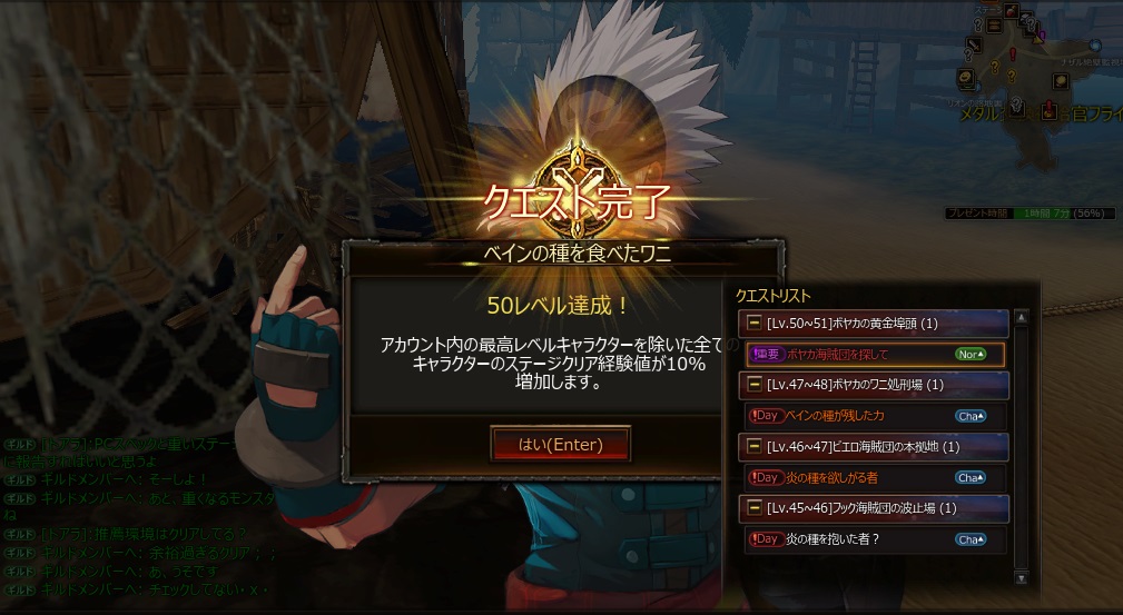ゴリラがとうとうレベル50に達しましたのはいつの頃だったでしょう・・・ 右側に放置イベントの時間があるところを見ると、そのイベント期間中だったことがわかります さてこのゴリラの育成方法とは・・・ レベル43か44くらいで、ナザルの断崖絶壁監視塔というマップの、蜘蛛の巣とゴーレムが眠る地(略してクモとハーピー)の、デイリークエストがそれぞれ2つずつ、計4周すると、10万金の鉱物 + 拾ったアイテムお店に売って5〜7万金。 難易度Cで20分とかからず終わるデイリーです それと、ハ...