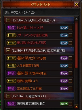 気付けば、今は経験値1.5倍イベント中だったのでした ステージ内だけ1.5倍とはいえ、侮れません! 久しぶりに疲労度全部消費しまして、ソロで58ダンジョンの廃坑を周回しました ラピス洞窟 すごく簡単 ハルダリムはすごく苦労しましたけれど、なぜだろう?と思い返してみますと、ブーメランを投げる骨がいたり、暗黒の波動を飛ばしてくる骨がいたり、落雷落とす鉄の塊がいたりと、遠距離攻撃が多かったように感じました。 ひどい時などは、最初のセクターでHP30以下とか、1し、とか。。。 ...