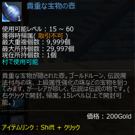 今日のワールドクエストはお気に入りのナザル絶壁、ゴーレムの眠る地 どこで手に入れたか分からないのですが、こんなもの拾ってました 15レベルで開封可能、ということは、いつでも入手の機会があったということなのでしょうか 今までクリティカで遊んできて初めて手に入れたアイテムです 何が出るかな〜・・・・ ワールドクエストで手に入る、献身メダルと交換の黄金の壺も気になるところです それから、昨日水色星装備の事を知りまして、ネズミモルキル、交互にソロで遊んでいまし...