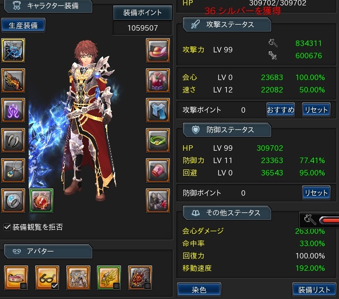 JUGEMテーマ:幻想神域 -Innocent World- アクセ強化がおわりました ソロです 自分の攻撃の1%が2400なので 琴と書がPTにいれば92万までいきそう ダクパニ20でカンストできないかなー とかおもってますが無理かなw やっとダクパニ作れるので 楽しみです そういえば生放送の情報では、槍が新職業としてくるみたいですね 新職業がくるとなにかと儲けれるのでうまいですねw おしまい