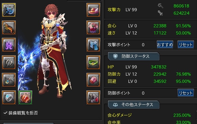 JUGEMテーマ:幻想神域 -Innocent World- こんばんわ斧です ビューフロアクセが3箇所+30になりました あんまり変わってませんがw 攻撃力が前のときより1万7千程あがりました(戦闘中) 通常時では70万ってところですw 残るアクセ強化が パストル+25 グス牙+20 の2箇所なのでがんばっていきたいですw 最近はモチベあがったり下がったりなので、 モチベ高いうちになるべく叩きたいところですね〜・・ そういえばですが 幻想神域のブログでこんなにステ晒しまくってるぶろがーって そんないな...