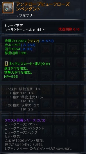 JUGEMテーマ:幻想神域 -Innocent World- どうも最近いろんな人にイケメンとほめられる私ですえっへん しかし 中身がどうやら変態とか、ホモとか思われてるみたいなので 誤解を解いていきたいと思いつついる私です それはそうとビューフロが完成しました。 転移したばかりなので強化はおわっていませんが、 ネックレス4 リング3 マント4 さがりましたw そして斧の戦闘ステ 攻撃は転移でさがったのでなしですw 料理は野菜、チョコフロです この無駄な会心をなんとかしたい・・w ドラ...