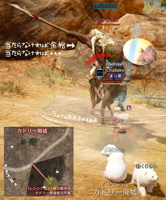→じ ビクビクしながらレッドネームパープルネームへ挑戦 避けるって事を覚えました(今更) 砂漠方面へ促されるクエを何となく進めてみました 砂漠へ踏み入る為には そう、 ラクダさんをゲッツしなければ!! 意気込んでみたけど後ろにいるボフロさんと話すだけですんなり頂けましたwww 厩舎からだすとおすわりして待ってますカワ(・∀・)イイ!! ...