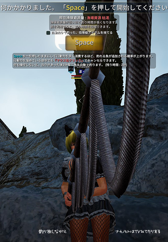 JUGEMテーマ:黒い砂漠 最近は全くやる気が起きず、毎日ログインはするもののずっと放置ばかり。 ログインボーナスをもらうためだけにね。 まあ、普通は、釣りや馬で放置するんでしょうけど、何もせずただ放置してます。 で、たまには釣り(ベリヤではない)でもしようかと漁船に乗って鳥山を追いかけましたね。 快適そのものですね。鳥山を見つけてもだれか先にやっている人もなく、後から来る人もいないのでのんびり釣りできます。 ただ、釣りして...