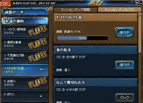 JUGEMテーマ:RED STONE ミッションブック2「村の何でも屋」 クエスト 『恋の果て』 これも知らないクエだな〜と思ったら BFに追加されたクエなんですね?! ちなみに、最初に受けるクエ名は「種族を超えた恋」 進行していくとクエスト名が変わります。 受諾するには漆黒の城、右上エリアにいるマイラーから。 イダというサキュバスをお姉様と慕う弟子の...