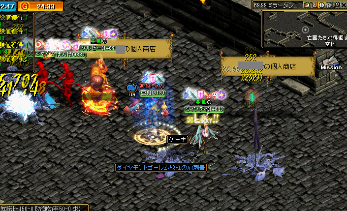 JUGEMテーマ:RED STONE なんでこんな変な現象起きるのか分かりませんww 再インスコしないと公式にBANされそうですね… めっちゃ面白くて好きなんですけど。 でも、ちゃっかりカテゴリー作っちゃいましたww いつもの狩場に行ってみると、そこにはなぜか露店が。 この狩場使ってる人がマーキング的な意味でサブで出してるのか…? でも近くに狩った...