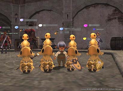巷ではチョコボがそこかしこに見られます。タルタル以外はビックバード(セサミストリート)にしかみえませんけどね!そいえばビックバードもトゥイーティー(ルーニー・テューンズ)やウッドストック(スヌーピー)もカナリアらしいです。同じ鳥には見えませんけどね!チョコボが4匹集まっていたので、雛チョコボをプラス。ビックバードプラスのSSもありましたが、やっぱり自分の日記では自分が見たいものだけを残しておきたいので載せませんでした(⊃д⊂)自分も少し遅れてチョコボスーツゲットヽ(´ー`)ノヨルシアのスカームへ参加したら空LS...