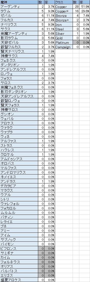 JUGEMテーマ:オンラインゲーム日記 メモ アンドロ:パイモン?、ムルムル?、ロノウェ? 変マン:デカラ?、ウアル?、パイモン? ベリアル:デカラ?、ムルムル?、パイモン? いや、プリセットあっても構成変更面倒でした・・・ (パーティ解散→アシスト解放→プリセット読み込み→パーティ編成) 共闘で募集見てから付け替えるは魔王以外はしんどい(間に合わん)ですね。 (まあそれぐらいで集まるのなら自分で募集すればいいんですがね。) ...