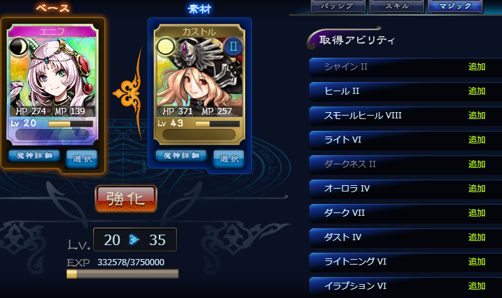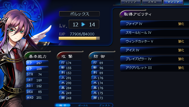JUGEMテーマ:オンラインゲーム日記 (アミーさんお世話になりました。) と、いう訳で、オリアスにアミーを合成させました。(光闇アタッカーのレギュラー引継ぎ) ブラッドソーン強いですね・・・(2000〜3000程のダメ+味方全体を二桁後半程回復) ちょっと使いづらいのが、補助技的扱いなのか優先度が普通の攻撃技よりも低いようで、 オートで回すと一応で入れてるストライトとかを先に打ってしまいます。 (餌のレベル上げでアシストにアーゲン入れてスライス借用してたら、先にスライス打ってんの・・・) ...
