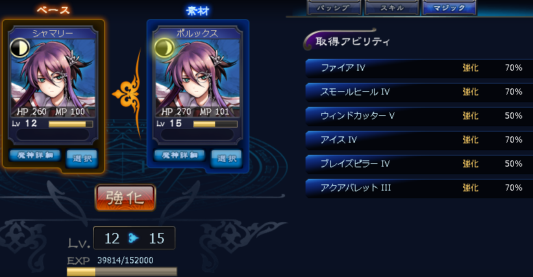 JUGEMテーマ:オンラインゲーム日記 スモヒ以外全当てという、なんという大勝利!(1回前の強化にてALL85%で半分外してるけどな!!) デカラに食わすには餌の時点でファイア?まで持っていかんとなので・・・ あと何体重ねればいいんでしょうね・・・(4体で済めば超ラッキーってレベル) いやー、先が長い。ファイアだけで。ピラーとバレット覚醒まではあと何体必要になるでしょうかね。 現在ピラー?、バレット?なので、えーっと・・・(私はここで考えるのをやめた) 本日は割かし時間あったので、昨日に続きベ...