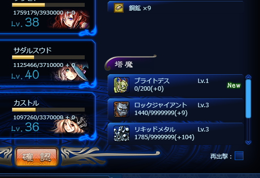 JUGEMテーマ:オンラインゲーム日記 あっ、だるい!だるいぞ!? 本日メンテにてゲーム内イベント「顕現せし修魔の塔」が始まりました。 内容は、ずらぁっと列を成して並んでるボスを倒して、 途中途中の宝からイベ収集アイテム「修魔の印」を集めるっつうものです。(ボスラッシュですね) 修魔の印を300集めるとアスタロトの新服(戦闘後HP100MP20回復)がもらえ、 またイベマップでのボスはドミネート可能で、宝箱から蒼玉も出る(らしい)ということで、旨みはありますね。 ただ・・・だるいですよこれ。 ボスの強さ...