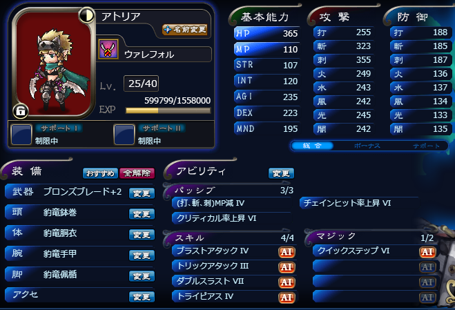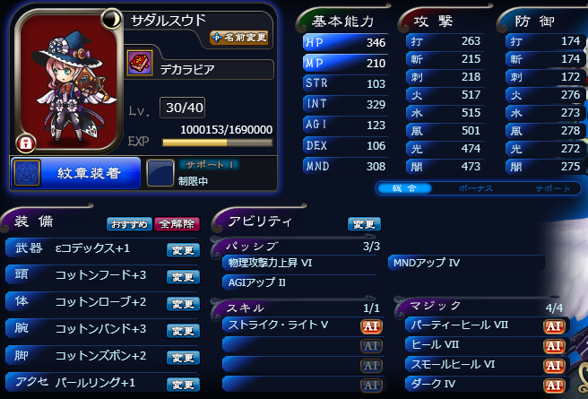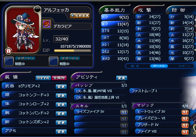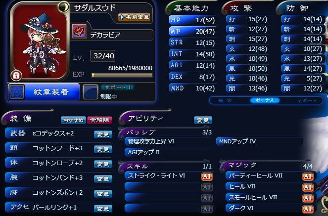 JUGEMテーマ:オンラインゲーム日記 はい。(この間に特に意味はありません) 今日は時間がなかったので、最古第2をちゃっちゃと回って終了しました。 有用な刻印は得られ ず。(伏字回避) そんな訳で今日は強化もちょびっとだけ。 天砕アンドレ食った賢天フォラスをデカラ(平)に食べさせました。 (出来る限り餌に経験値を回せる育成方法で。 スモヒ持ち→スモヒ持ちは無駄になるので注意。 あと槌以外→槌と育てるとMNDのボーナスが帰らぬ人となってしまうので気を付けてます。) スト...