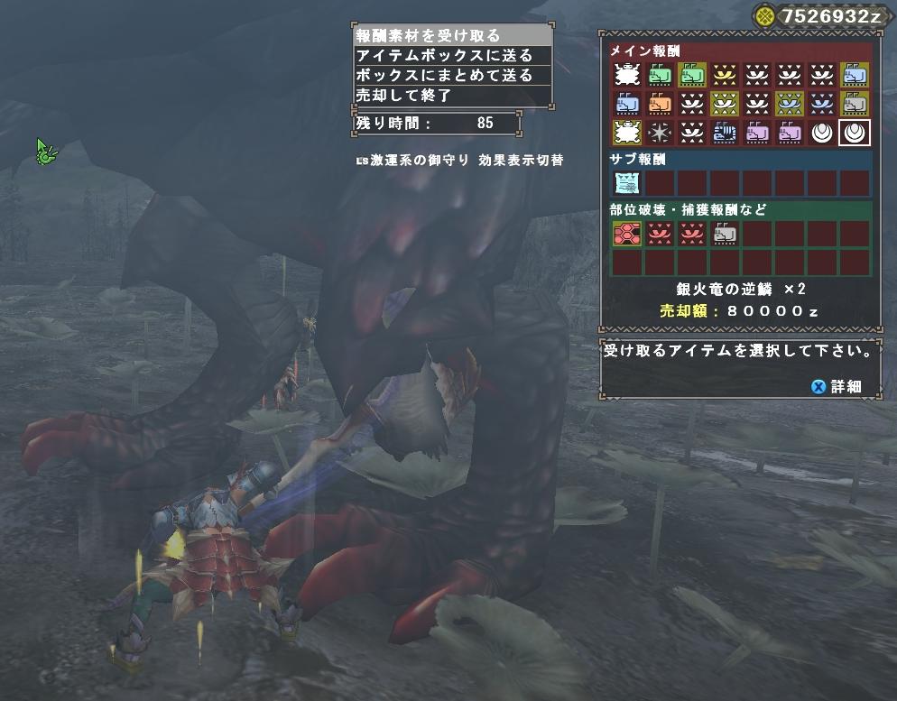 昨日の記録 朝にインして極限紅ミラ、2戦して睡魔が襲ってきて仮眠。たっぷり寝たはずなのに2時間近くも寝てしまう。今度こそと紅ミラを倒すけど1戦目で眠気が・・・アニメ電波教師のYDに罹ったみたい。ちょっと休憩して2戦してログアウト。 午後にインして紅ミラ再チャレンジ、休憩と昼寝を挟みながらようやく G50武器が作れる(最後だから推薦状は白にした) 夕食時間になりそうだったけどシャンとディスを1回づつ消化して参加賞狙いだったけどディスで1死。これで装飾珠を戻してたくさん配信されている部位破壊サ...