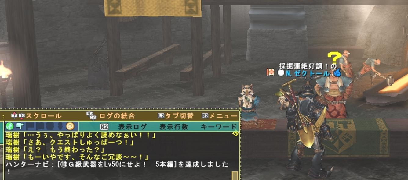 昨日の記録 朝にインしてこの記録を更新してログアウト。放置されていたトレジャー隊のお宝報告10数件が回収されていたのおこぼれ頂戴。 メンテ明けにインしたけど予想どおり鬼神G防具イベントに天廊が配信、鬼神防具が欲しいので下見に行く、ダメ元でみなもと持つけど予想どおり使用不可、双頭クエストと銘打っているのに闘技場には苦手なラージャン1匹、攻撃したら予想とおり赤いオーラを纏い回復薬がどんどん減って1死、回復薬G調合してエリアインして使い切って2死目時間にして7分でリタイア。混雑ワールドに行くと募集...