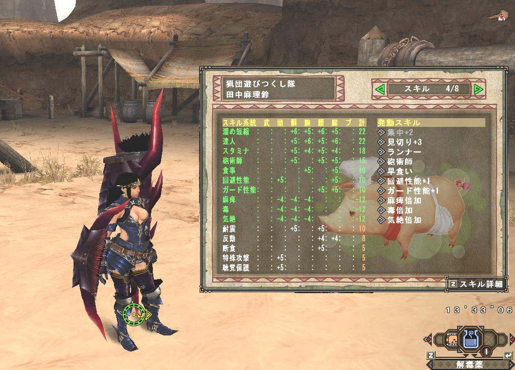 昨日の記録 朝にインしていつものように一時ラスタを借りに行ったらディスの影響か狩人珠スキルが暴れ撃ちの方が目立つ、普段なら武器術(大)なので片手剣の攻撃力が上がっているけど暴れ撃ちだとスキル表示も灰色になり効果無しのことが明らか、いろいろ探し回って武器術(大)の虚無ラスタさんをお借りした。 秘伝開門のレベル600は無理でも200まで行きたいと思っていた極限征伐も100を超えたらテンションダウンで団員さんががんばったトレジャー隊お宝で2つ目のネコピアス慰労を強化してログアウト。 ランチは焼き鳥...