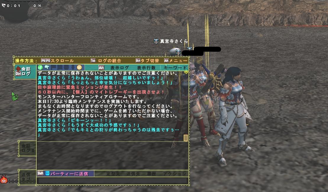 昨日の記録 朝にインして覚えたてのGエスピ高台見物でこの記録を更新したけどパートナーの武器を換えるの忘れて火属性ままだったのでダメージが入らずに残り10分から攻撃に参加して本当ギリギリで討伐できた。メンテ明けを楽しみに試練配信前にログアウトして温泉へ。 ランチは毎月のピザハットの日の持ち帰り半額ピザでパスポートは使用せず金額も倍でリッチ?なランチ。 4時半ころインして3回デイリー苦行を消化してパローネに行ったら最後のヴォルで いきなりの緊急メンテ告知 告知からメンテ開始まで5分もあるかな...
