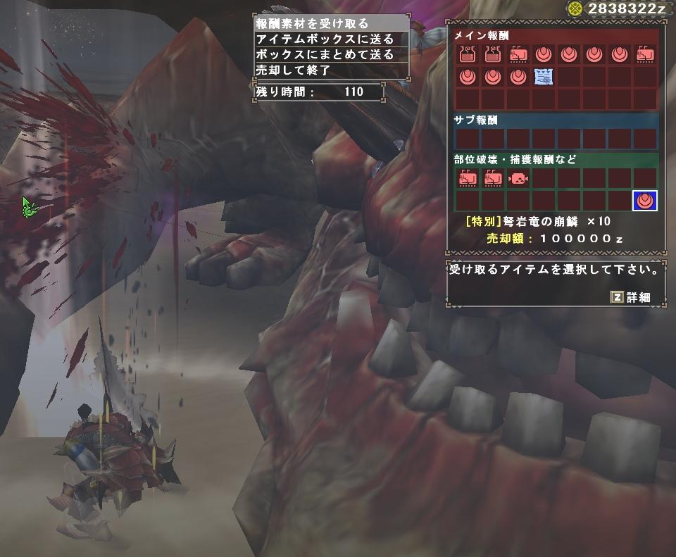 昨日の記録 朝にインして日曜恒例おバカ試練を待つと運搬や演習ではなくて下位ゴゴモア、剛武器なら10回も攻撃ヒットしなくても終わりそうな超弱モンスター。移動も少なくBCスタートで一時ラスタの笛の音を聞き流して隣のエリアに入りテオ太刀振り回すとラスタ軍団が麻痺をさせる前に終わっちゃうことも。気短の護符で30秒で帰還、30分もしないでMの入魂が5000を超える。 Zにチェンジしてアイテムポーチにギルドへの推薦状99枚持って未だSRの片手剣で2戦して入魂の繰り返し、護符はMより短い20秒版なのでサクサク...