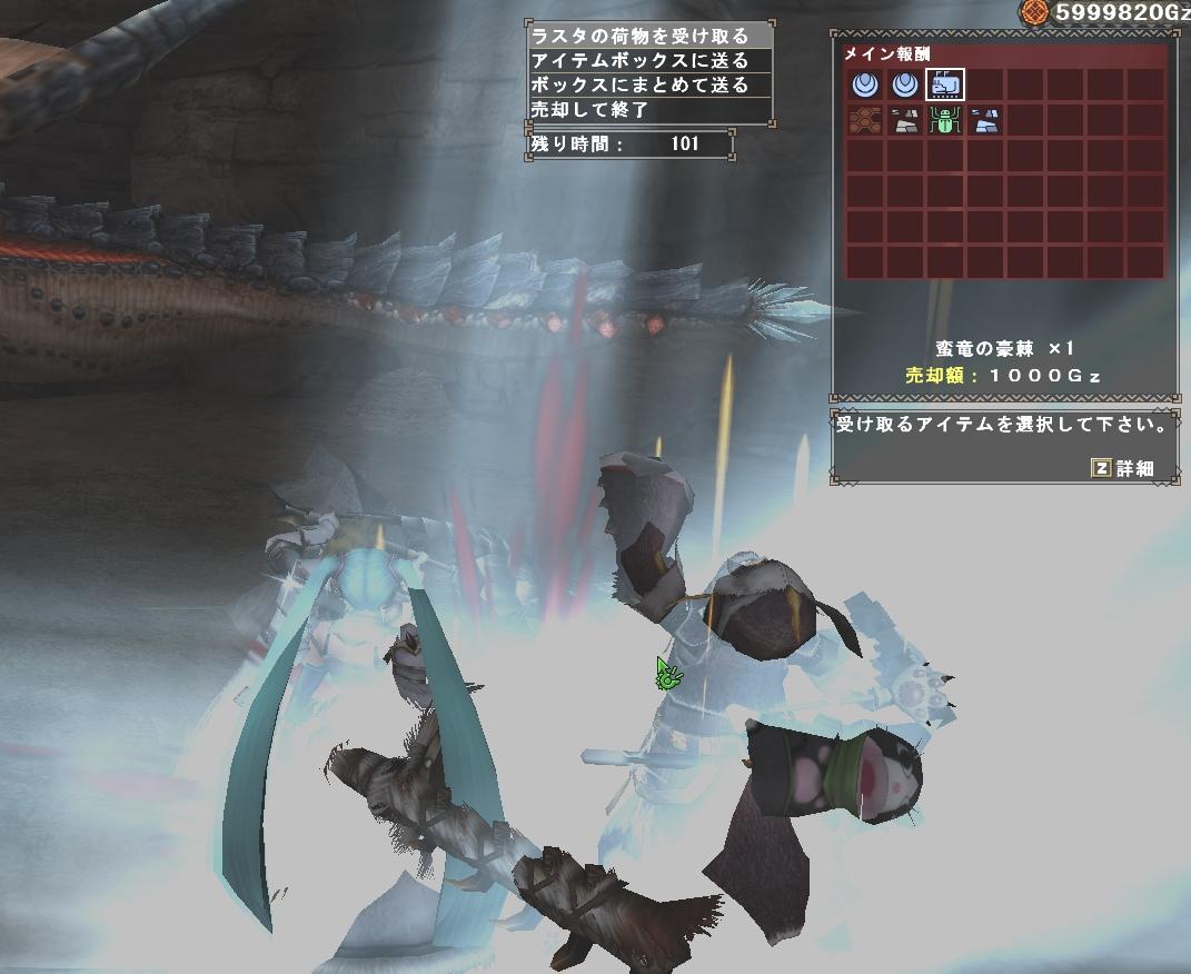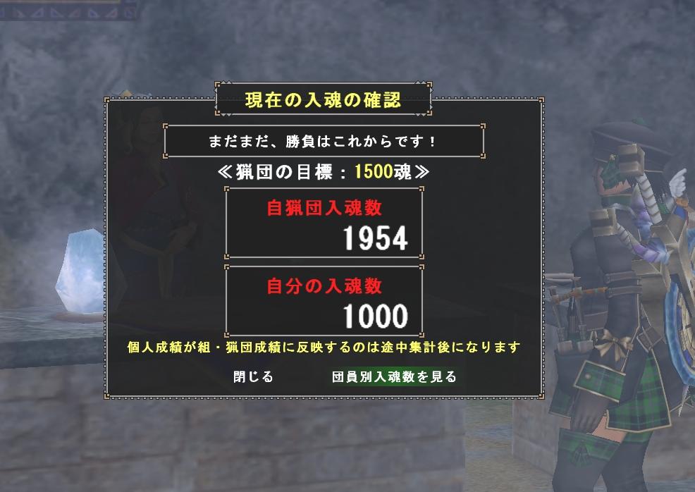 昨日の記録 朝にインして、多くの方がブログで書いているであろうとおり恒例となっていたおバカ試練が・・・・通常試練?に戻って上位ディア亜種2匹の「死神」。その前に架空のクエスト名でシクレ確定の偽チャットが流れたけど6時半過ぎて7時からだろうという雰囲気の中「死神」とチャットが流れたときは本物ッポイ偽チャット2号かと思ったけどいっぱい流れて試練確定と判ったけどガックリしたのは自分だけでは無いはず。あまりやる気は起きなかったけどHC素材在庫少なかったし同じランドで装備自由募集があったので参加、開幕...