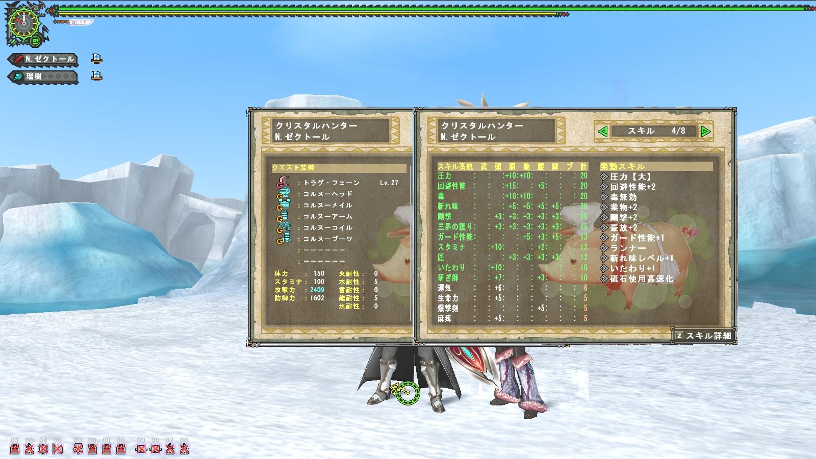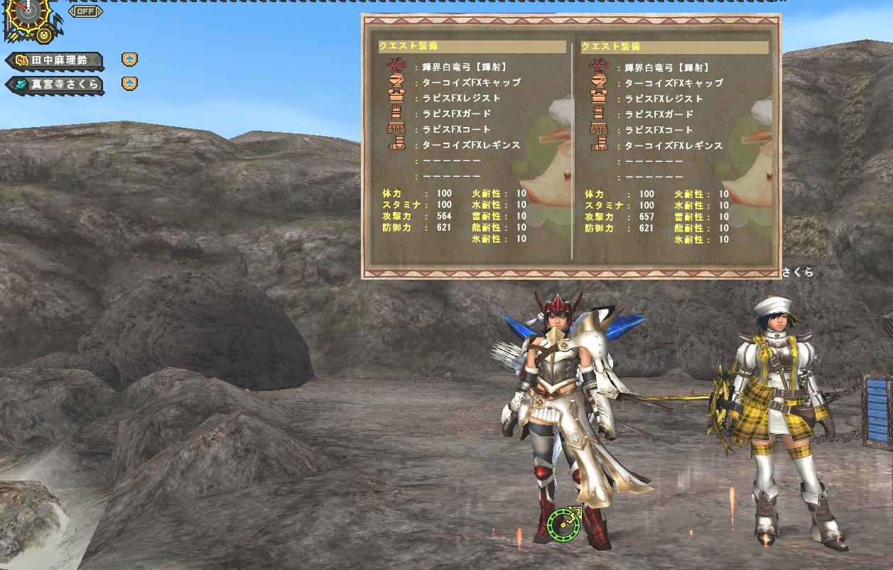 昨日の記録 朝にインしてMでのパートナー作成、パートナー諸元二ついては他の方のブログでいろいろ調査解析されたものもあり私のは勘違いも多いし個人的判断で参考にならないけど個人的記録なので読んでいる方はご了承ください。Mでは性格をZで使った天然以外にしたかったのでおしとやかにしてみた、武器もSP武器にして数回クエスト行ったけどどうも会話が楽しくないのでお別れして性格クール、真面目を試してみたけどしっくりこないのでZと同じ天然で落ち着く、武器と防具を与えて 武器の色とコーデしてみた スキル無しでも狩...